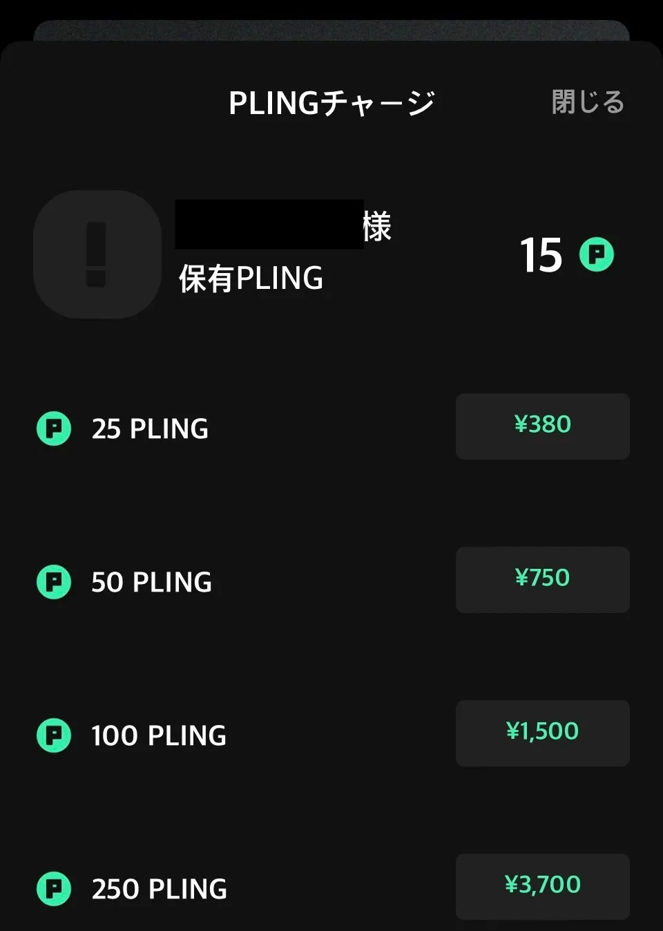 - 一度にチャージするPLING数が多いほど、ボーナスPLINGを獲得できます。