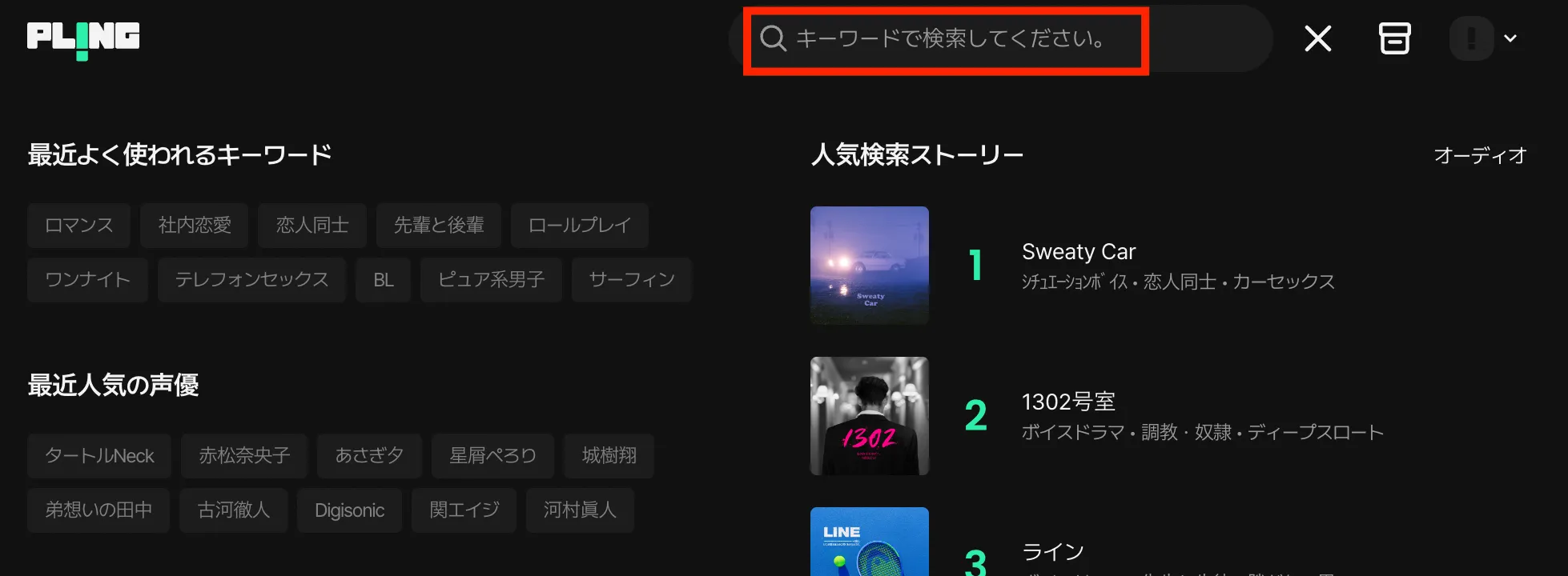 検索窓から、作品名・キーワードを入力すると、一致する作品が表示されます。
