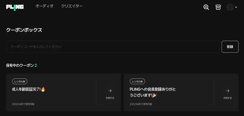 PLINGの全てのコンテンツの中から、お好きな作品を無料でお楽しみいただけるクーポンです。