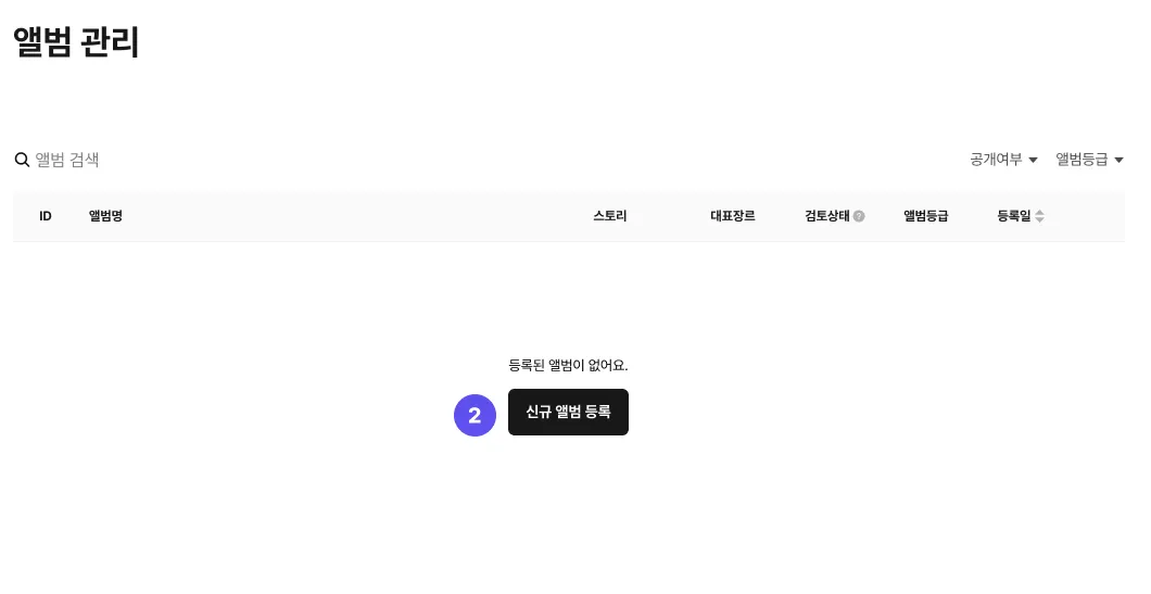 ② 신규 앨범 등록 : ‘신규 앨범 등록’ 을 클릭해 주세요