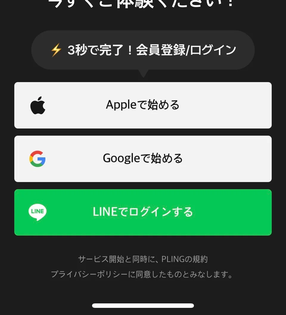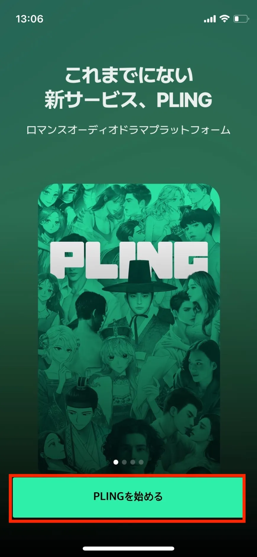 PLINGアプリをダウンロードいただき、「PLINGを始める」をタップします。