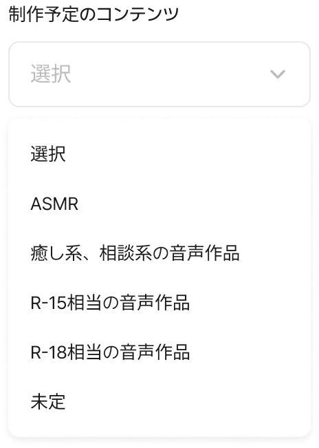 ⑤⑥類似のご経験および制作予定のコンテンツ:以下の項目よりご選択ください。
