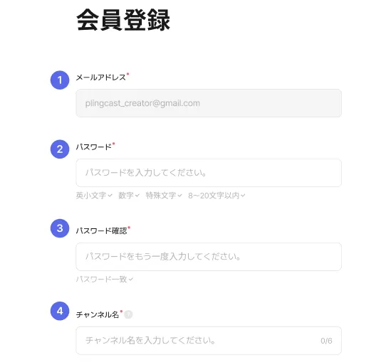 ④チャンネル名 : PLINGにて活動いただく際のクリエイター様のチャンネル名を入力してください。