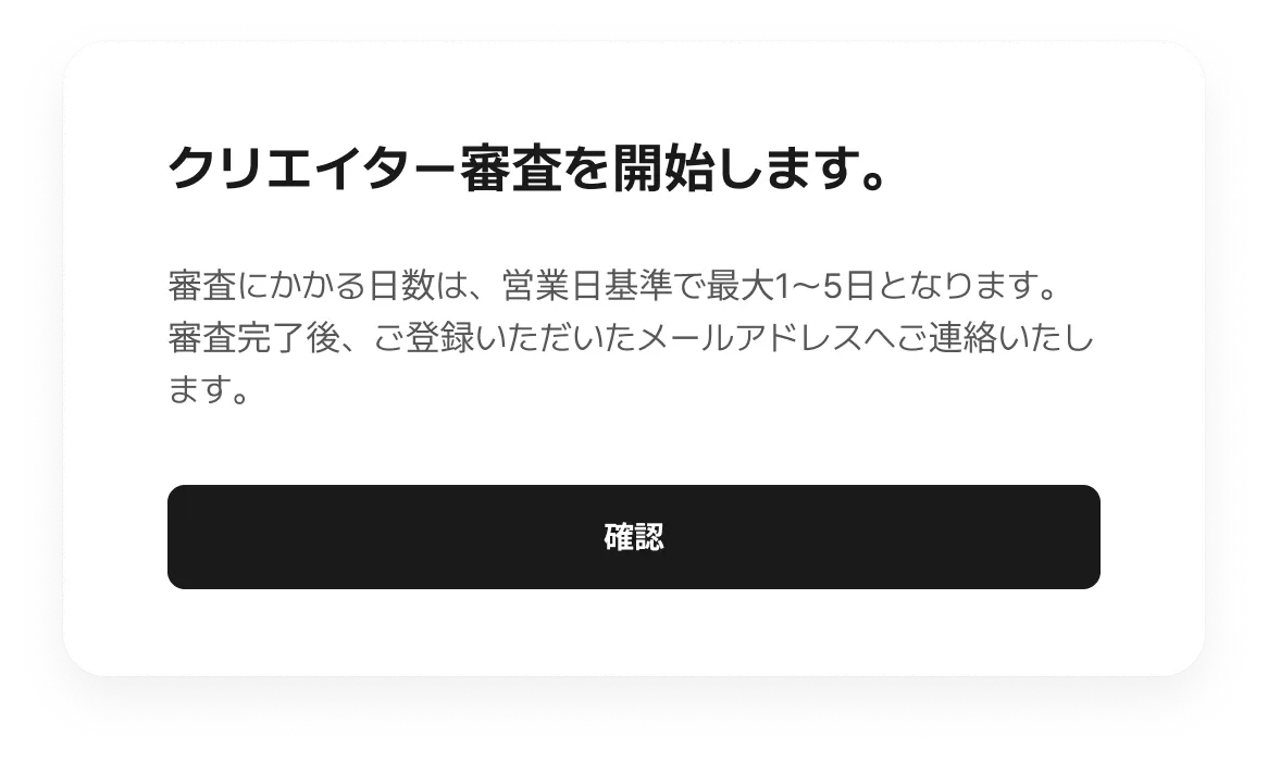クリエイター審査に必要なお手続きが完了いたしました!