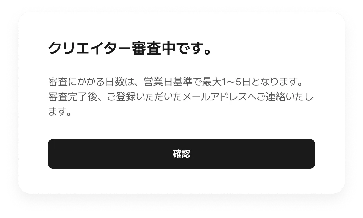 審査中は以下のようなポップアップが表示されます。この場合、審査が完了するまでもうしばらくお待ちいただきますようお願いいたします。
