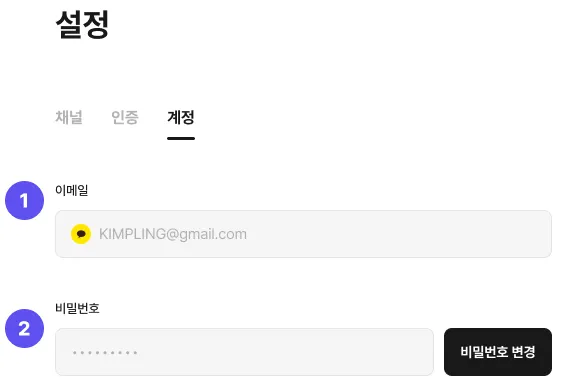 ② 비밀번호 : 비밀번호를 변경할 수 있습니다.